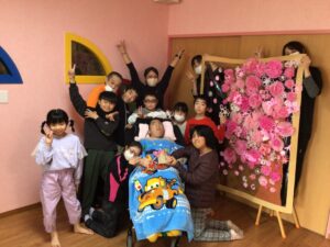 春の足音が聞こえる季節。今月はみんなで「桜の壁面制作」に挑戦しました!