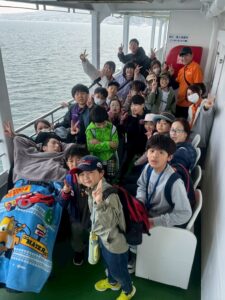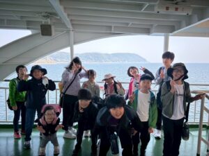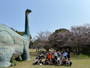 桜島フェリーで海を渡り、恐竜公園へ!巨大な恐竜を前に、子どもたちは大興奮。